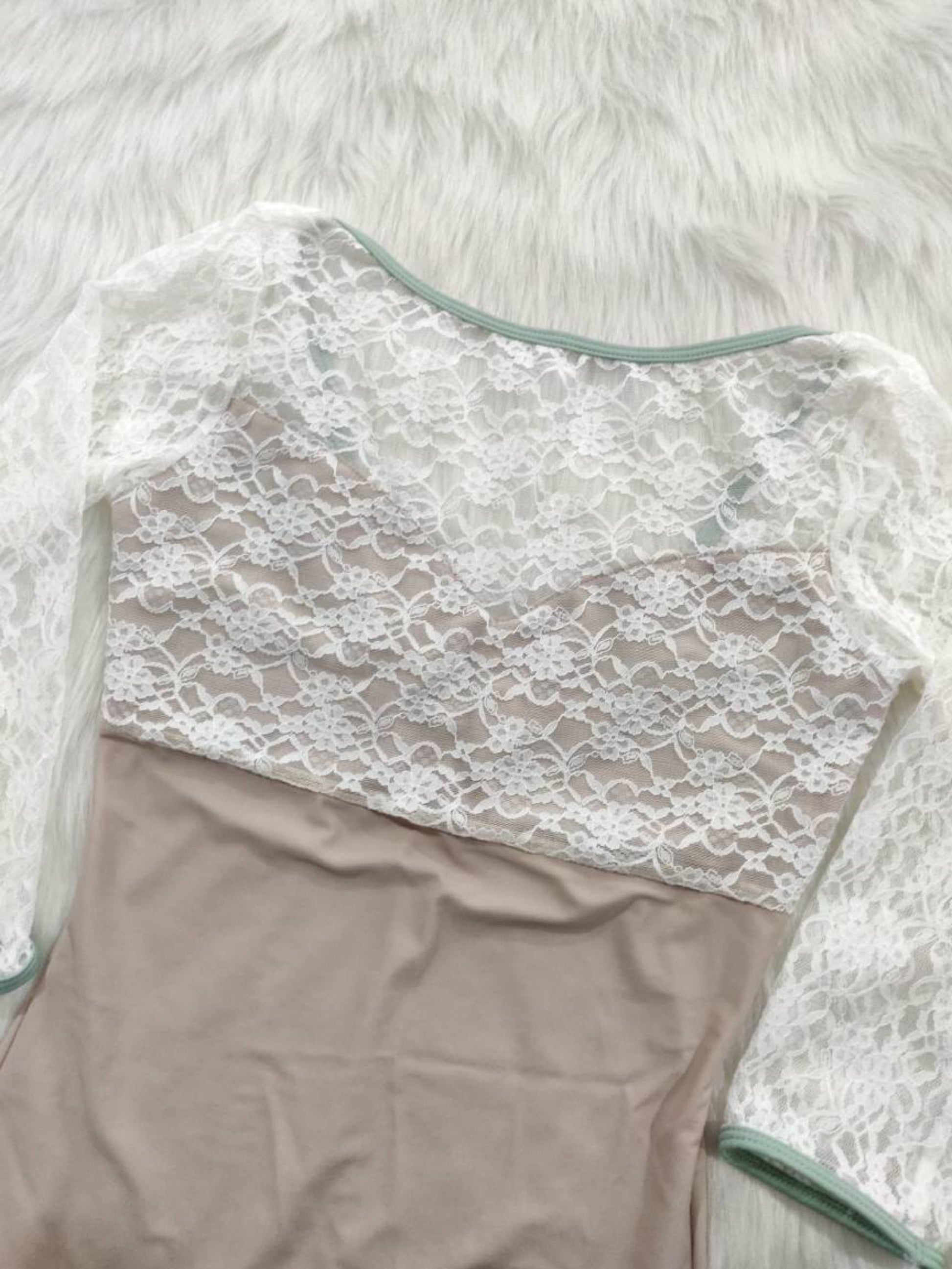 *袖のあるデザインはレッスン後など汗で着脱しにくいですが、レース部分はとても繊細な為、レース自体を引っ張らないように十分にお気をつけ下さいませ。(ストッキングのように丸めながらの着脱がお勧めです。)