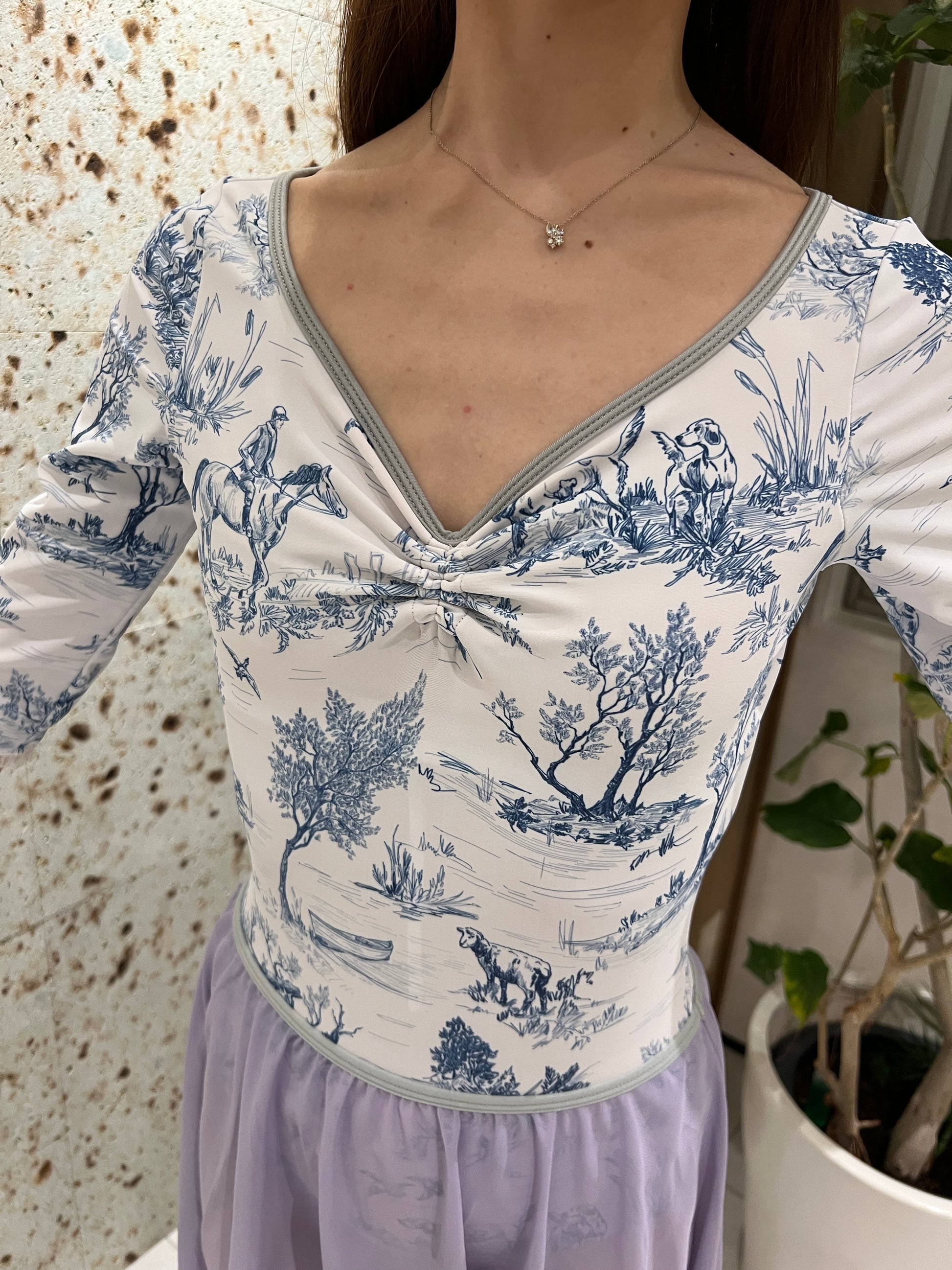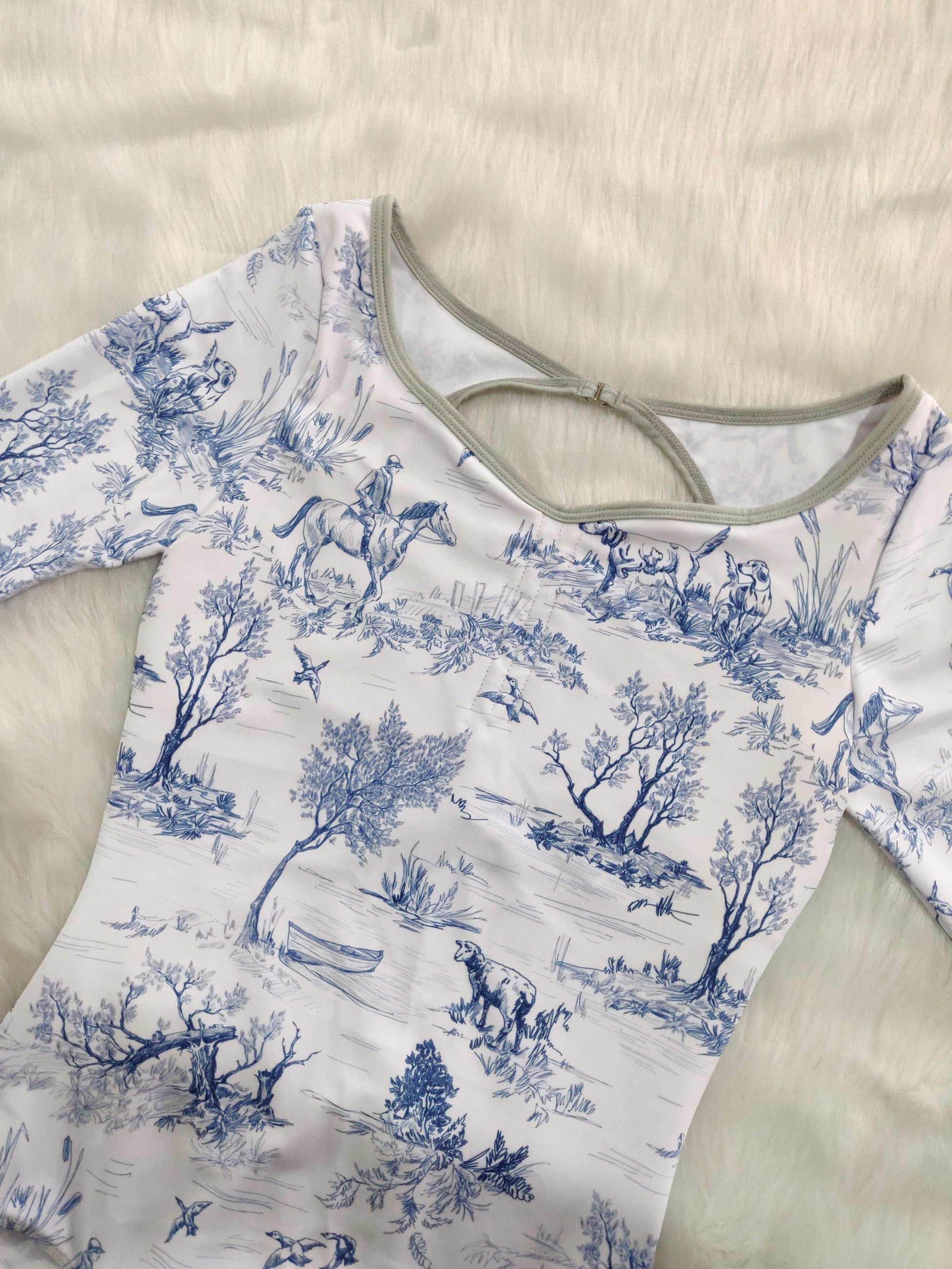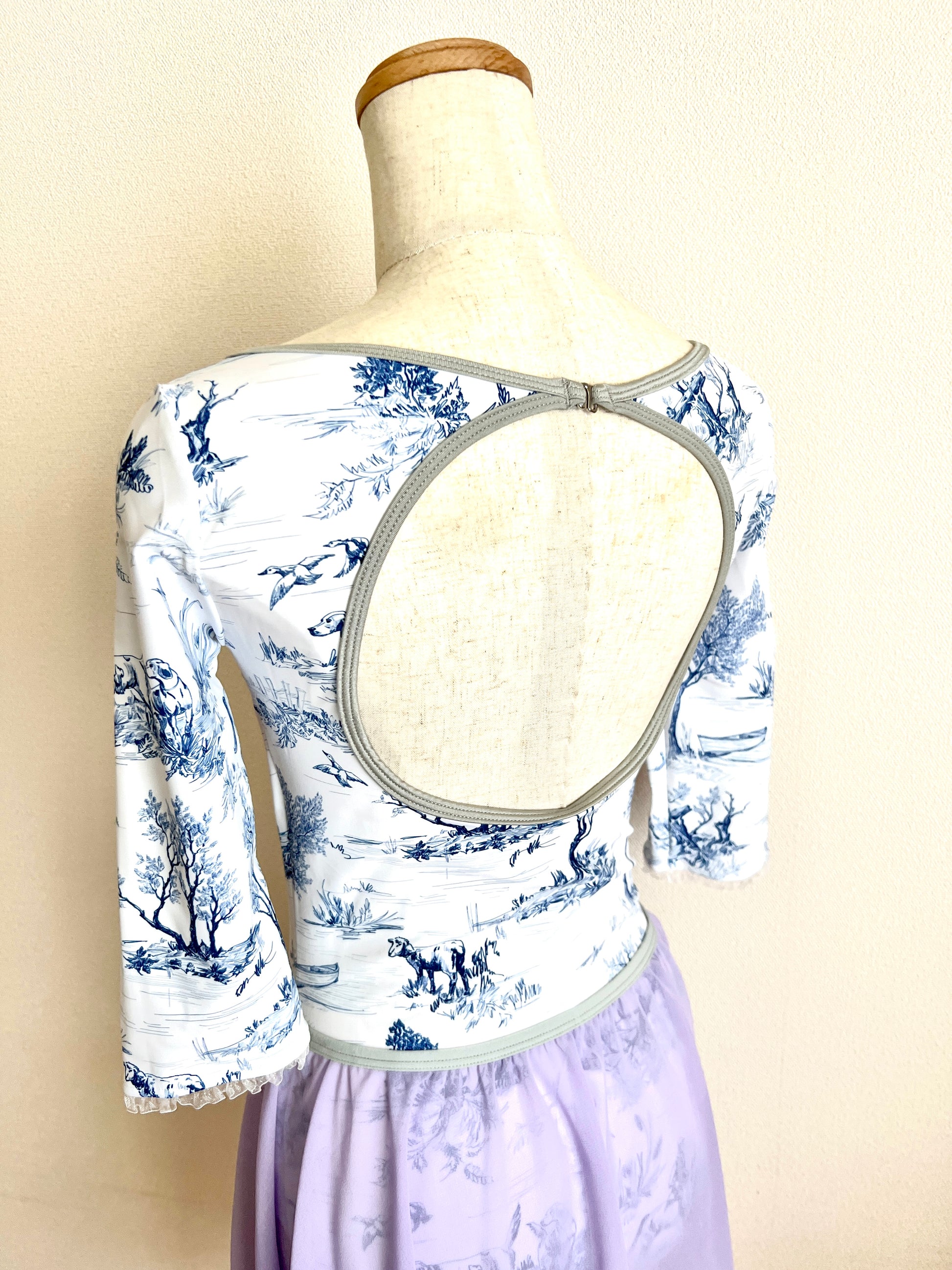 *袖のあるデザインはレッスン後など汗で着脱がし難いですが、生地を強く引っ張らないように十分にお気をつけ下さいませ。(ストッキングのように丸めながらの着脱がお勧めです。)